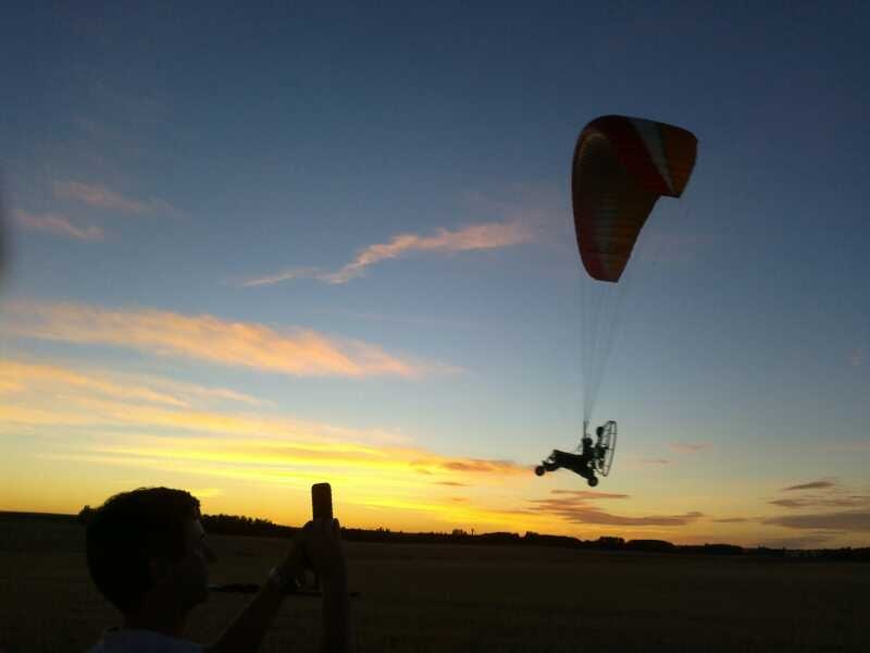 En el acto inaugural se pudieron ver saltos en paracaídas, acrobacias aéras en paramotor, una exhibición de ultraligeros de la escuela Air Marugán y un globo del Real Aéro Club de España.